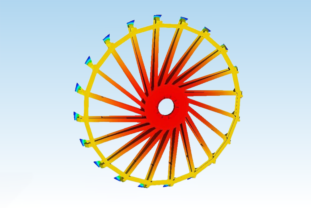 使用通用结构仿真模块,建立水电上机架一体化模型与导轴承约束,加载机组自重、轴向推力、水压力载荷,开展强度与刚度分析。通过查看应力分布、最大变形量,定位横梁薄弱截面、焊缝风险点,支撑筋板加密、焊缝补强设计,提升满负荷运行承载可靠性。